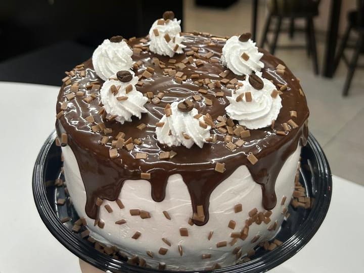 Brigadeiro de caramelo, mousse de chocolate e café, bolo de chocolate Peso aprox da fatia 150g